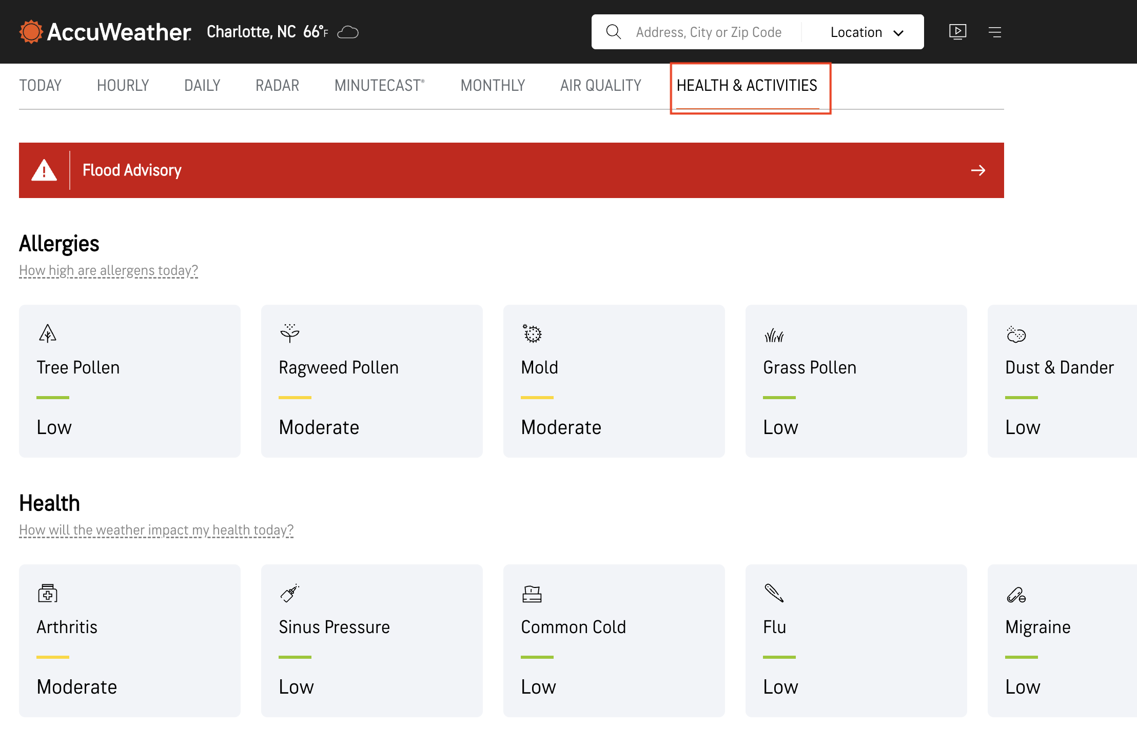 Accuweather.com offers many types of heath forecasts which HD+ can display as a tile.